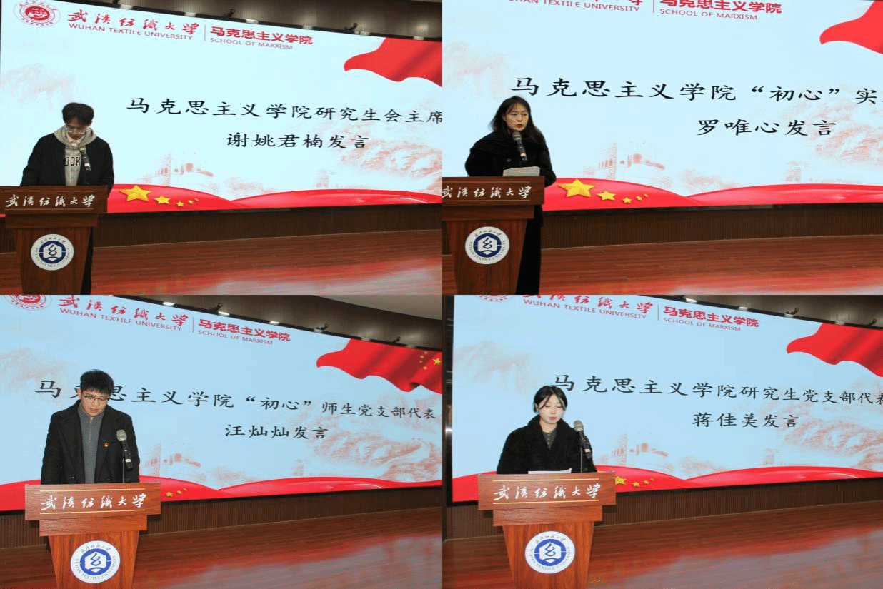 yl6809永利官网研究生会主席谢姚君楠、“初心”实践团团长罗唯心、“初心”师生党支部代表汪灿灿以及研究生党支部代表蒋佳美分别上台代表学生组织作年度总结报告。他们总结了过去一年各部门在学术交流、文体活动、志愿服务和学生综合素质提升等方面的成绩。同时,针对工作中的不足进行了反思,并对未来的工作提出了展望与规划。