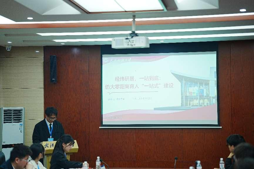 谢姚君楠以《经纬研居,一站到底:纺大零距离育人“一站式”建设》为题作专题报告。他详细介绍了我校研究生“一站式”公寓的规划布局与运行机制,重点分享了学校依托公寓空间开展的“学术沙龙”“导师驻楼计划”“跨学科创新工坊”等特色活动。他指出,“一站式”社区不仅是生活空间,更是思想引领、学术交流、实践创新的育人阵地,并提出“优化资源配置、强化数字赋能、深化校际共建”等建议,为兄弟院校提供了可借鉴的实践经验。