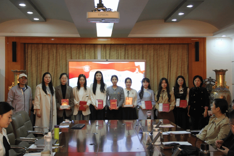 图为孙文礼(左一)、李艳鸽(左二)和杨晶晶(右一)为三等奖获得者颁奖