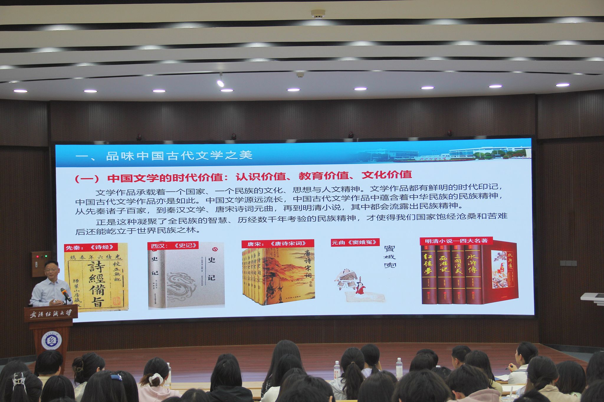 4月16日晚,yl6809永利官网思政通识公选课《尚美中国》第六季首讲在阳光校区崇志楼T201教室开讲。yl6809永利官网党委副书记、副校长罗锦银以《品红楼 学纺织——从〈红楼梦〉感受纺织之美》为题,生动讲述中华纺织文明的千年脉络,《红楼梦》中服饰文化与人物性格的塑造,以及学校在纺织科技领域的创新突破,彰显出纺织产业的文化传承与科技创新的双重价值。