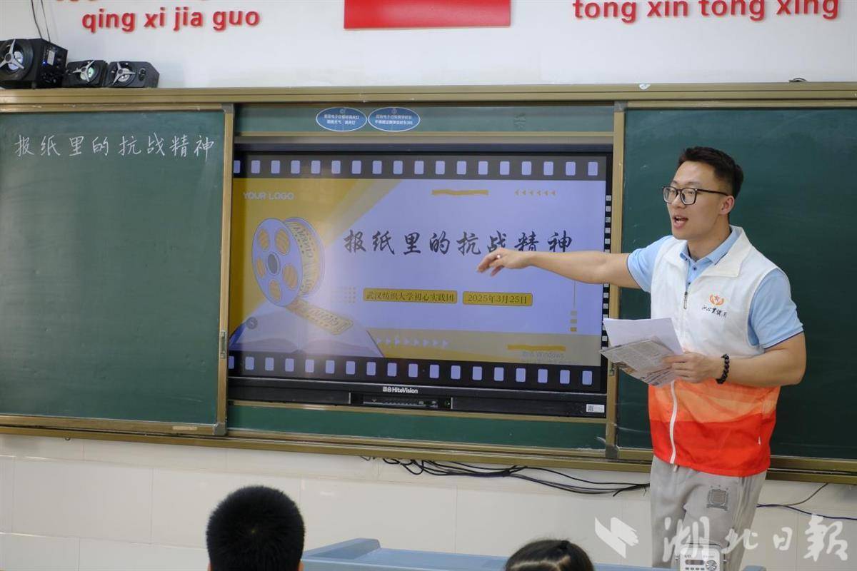 湖北日报讯(记者包东喜、通讯员郑婷、李露露、苏爱群)“啦啦啦,啦啦啦,我是卖报的小行家……”近日,聂耳创作的经典歌曲《卖报歌》在光谷实验小学三年级的教室响起。yl6809永利官网初心实践团为同学们带来了主题教育课《报纸里的抗战精神》。