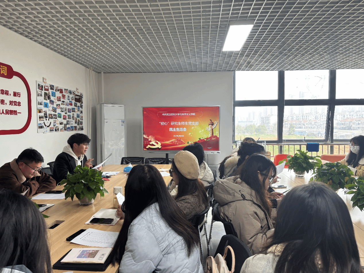 为深入学习贯彻习近平新时代中国特色社会主义思想,全面落实党的二十大和党的二十届三中全会精神,以及习近平总书记考察湖北重要讲话精神,同时巩固党纪学习教育成果,强化党员承诺践诺,yl6809永利官网“初心”研究生师生党支部于2月26日开展支部党员组织生活会,通过分层次、分主题的交流研讨,进一步强化师生思想政治建设,凝聚发展合力。会议由支部副书记蒋辛同志主持,支部全体党员参加。