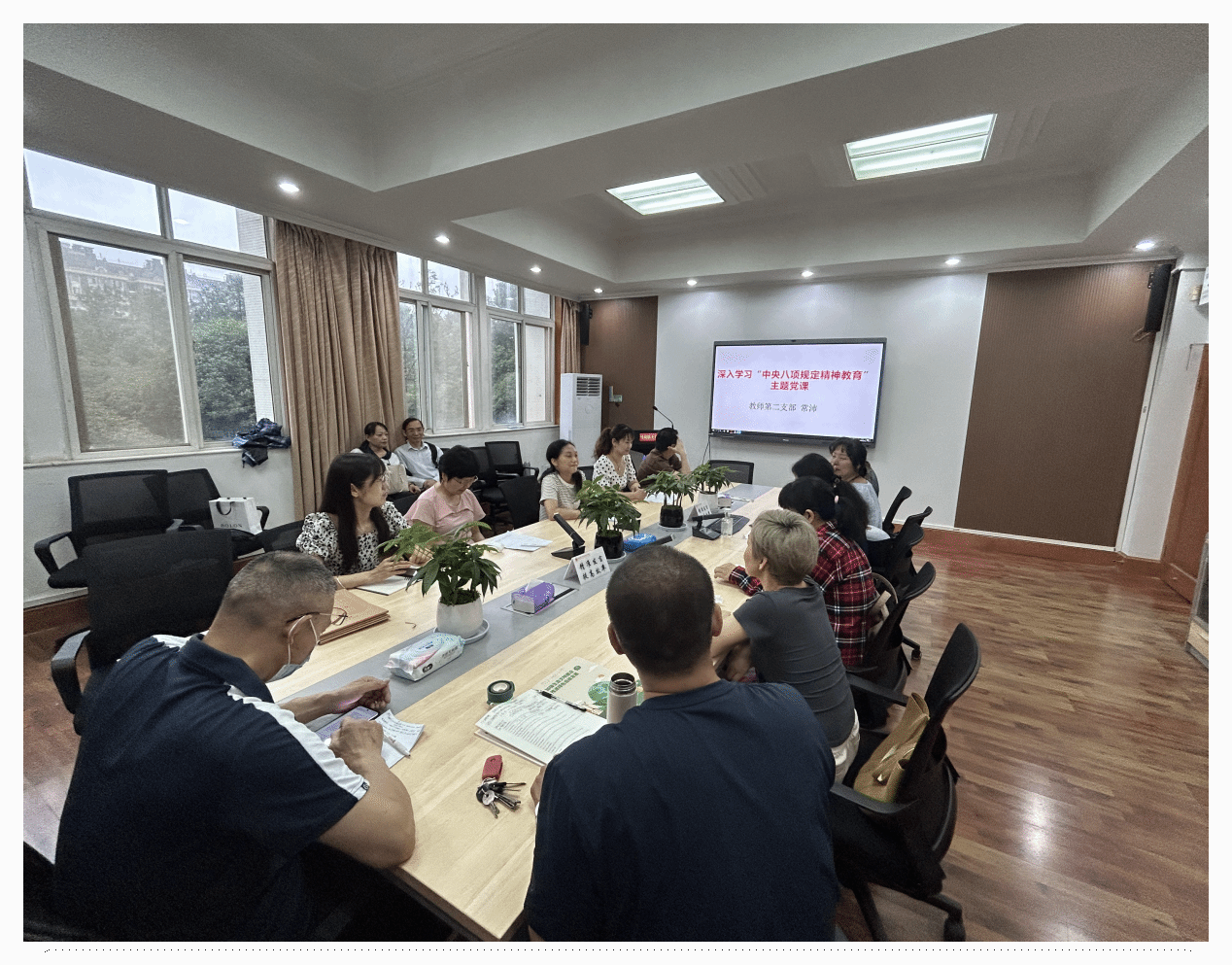 党课互动研讨环节, 李和山老师分享了自己日常教学的体会:“在备课过程中,我们杜绝‘穿靴戴帽’的形式主义,每节课都要设计至少一个师生共议的现实问题,这正是八项规定要求的‘务实作风’在教学中的体现。” 青年教师王永杰则结合科研工作谈道:“现在申报课题时,表格里不再要求堆砌荣誉证书,而是聚焦研究内容的实际价值,这明显是精简文风会风的直接成效。”