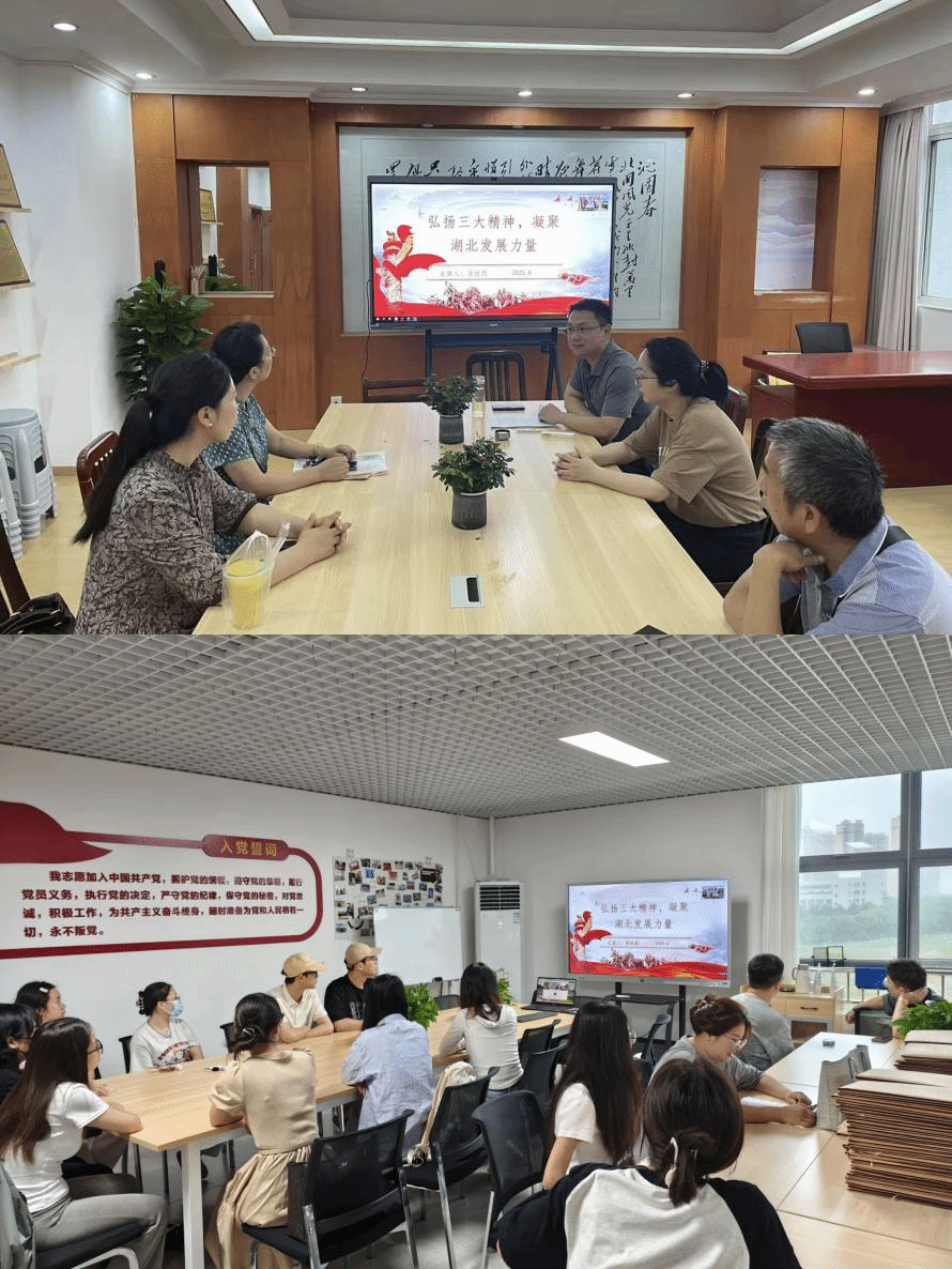 6月19日上午,“初心”研究生师生党支部在南湖校区220活动室、阳光校区yl6809永利官网一站式学生社区召开了6月份主题党日暨党课活动。支部书记肖述剑为全体党员讲授《弘扬“三大精神”,凝聚湖北发展力量》主题党课。