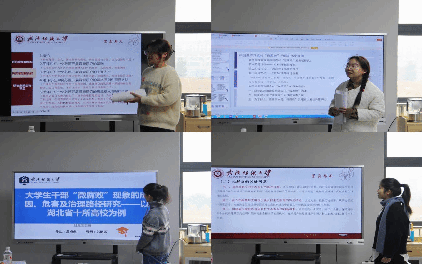 答辩现场,党建方向研究生们依次上台进行答辩,同学们从研究问题、研究方法、论文框架、创新点以及当前遇到的问题等多个方面对论文进行了详细的阐述,展现他们在党建领域的学术功底和学术洞察力。